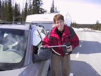 Kjøreturen tok 2 ½ time for de ca. 100 km og det ble jobbet mye med gearspaken. Det var også utrolig mange reinsdyr på veien og i dag har jeg funnet ut, at det er høysesong for reinflytting. To ganger om året flytter samene reinsdyra sine. Om våren opp på fjellet, slik at de kan gå og gresse hele sommeren og få kalver. Om høsten føres de ned i dalen igjen, der vinteren skal tilbringes. Reinsdyrene står oftest i veikanten og gresser og det er ganske enkeltt å fotografere dem, så lenge du lar bilen bevege seg. Går du ut, løper de. Jeg vet ikke hvorfor, men ofte får reinsdyrene den fikse ideen, at de skal krysse veien foran bilen. Det var nok å følge med på i løpet av denne kjøreturen.