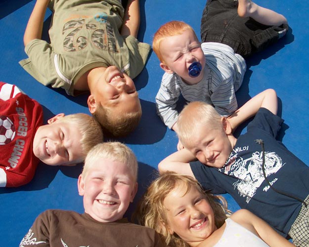 Jeg får arrangert et stevnemøte på lekeplassen, der et hav av andre unger følger interessert med på, at vi fotograferer og snakker med vennene. De snakker i munnen på hverandre, for å fortelle om alle opplevelsene de har hatt sammen.”Vi traff hverandre, da vi var små. Faktisk var det våre storebrødre, som møttes først. De er 11 år og er på stranden, dit de får lov å gå alene. Det får ikke vi ennå for vi er bare 9, men det gjør ikke noe for det er massevis å foreta seg på selve campingplassen”, forteller Jakob. Lillesøster Kia på 7 sitter i badedrakt klar til å innta campingplassens swimmingpool, men venter tålmodig til vi er ferdig.