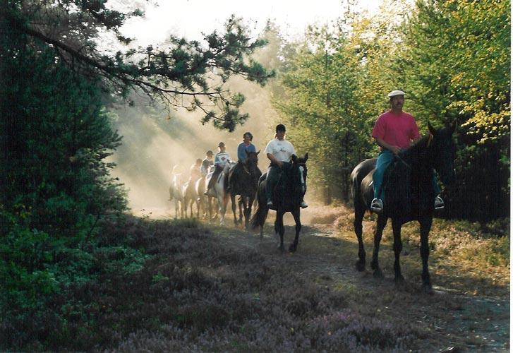 Neste dag sto jeg tidlig opp og gikk opp på bondegården, som lå rett ved siden av campingplassen. ”For de morgenfriske – ridetur på Lüneburger Heide (hede)” – sto det i brosjyren. Det hørtes ut som noe for meg, for jeg elsker å ri. Og ganske riktig var det full aktivitet i stallen, der unge og gamle var i ferd med å sale opp. Jeg fikk også en hest, og rett etter var det avgang. Hvilken tur. Vi red gjennom skog, eng og hede. Det var fortsatt disig og morgensolen hadde ikke rigtig fått tak, men luften var frisk, fuglene sang og duggen hang tungt i edderkoppnett og kvister og forvandlet naturen til et eventyrland. Best av alt var at vår guide snakket så lavt, når han skulle fortelle om området, og når han ikke sa noe, sa heller ikke andre noe, men nøt den umåtelig deilige stillheten.