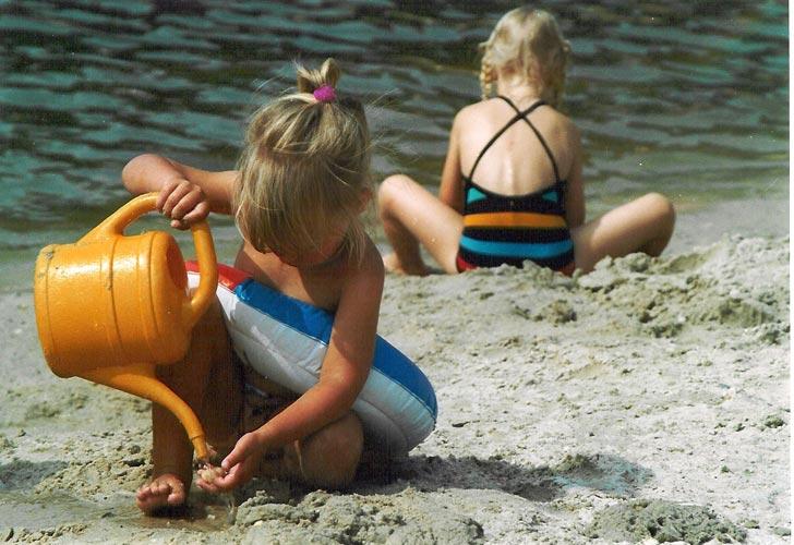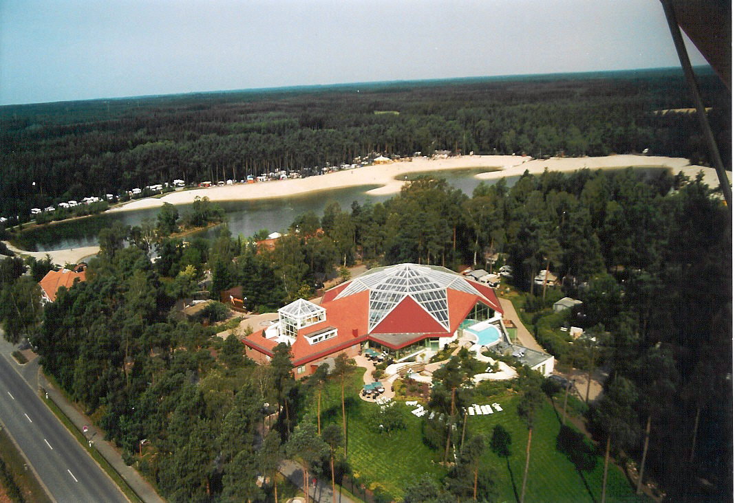 Etter frokost gikk vi en tur med Mathias i barnevognen. Folk hygget seg foran sine campingvogner, bobiler og telt. Nede ved den 35,5 ha store kunstig anlagte sjøen var et par jenter i ferd med å bygge sandslott. Fra det tropiske badelandet lød gledestrålende hyl fra barn i full gang med vannkamp. På scenen ble barna underholdt av klovner med narrestreker. Og slik kunne jeg holde på. Alle hygget seg. Vi avsluttet dagen på campingplassens restaurant med en runde solid og velsmakende wienerschnitzel.