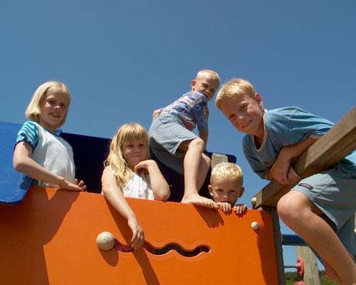 Glade børn på legepladsen, der er campingpladsens bankende hjerte. Her mødes vennerne.