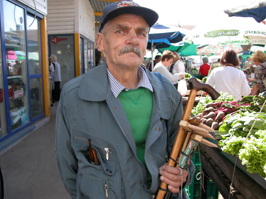 Centralais tirgus er Rigas hovedmarked, og er åpent hver dag fra kl. 6 om morgenen til kl. 14. (2004 red.) Det anbefales, at man besøker markedet så tidlig som mulig, så vi starter der. Selve markedet ligger primært i 5 store haller, som tyskerne i sin tid brukte til å bygge luftskip (Zeppeliner) i. Markedet er farverikt og levende. Salgspersonalet virker litt sjenerte overfor oss. Alt selges, men man kan med fordel kjøpe honning og fisk. Dessverre ikke rav, som Britta stadig gleder seg til å finne. Kanskje finner vi det inne i sentrum.