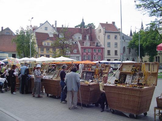 Endelig, langt om lenge ser vi rav. I alle de bøkene vi har benyttet under planleggingen av turen står det, at vi vil finne rav overalt. Men det har vi ikke gjort. Ikke før nå. Rett utenfor St. Peters kirken er det små boder, der det selges forskjellige souvenirer. Det er babuskaer i alle mulige størrelser og figurer. Det er ikoner, som imidlertid ikke ser ut til å være av særlig høy kvalitet. Og så er det rav. Selv om utvalget ikke er så stort, er det noen fine smykker i sortimentet. Britta og Ole blir, mens vi andre rusler litt videre.