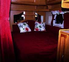 Utførelsen på badet er ganske lik den som kom på Royal i 2002, hvor du finner et stort og romslig baderom med toalett på den ene siden, vask i midten og et eget rundt dusjkabinett på den andre siden. Dusjkabinettet er spesielt med den runde formen, og du kan kjenne den igjen fra Fleetwood-vognene produsert av Kabe i England.Baderommet føles romslig og det er ingen problemer med for liten plass her. Godt med skapplass, håndkleholdere over varmeelementene og en dusj uten fare for vannsøl. Her er det plass til både tannpuss, dusj og toalettbesøk samtidig, om man måtte ønske det.Nyheten med baderomløsningen er altså at den fås i flere av Kabes modellstørrelser, men ideen i seg selv er ikke ny. Det er derimot løsningen på dobbeltsengen i TDLvognene. Den er nemlig konstruert slik at du enkelt kan trekke ut siden og lage den bredere. Madrassen følger med og utvider seg likeledes. Fra å ha en bredde på 120 cm kan du med enkelhet dra den ut til 140 cm bredde.