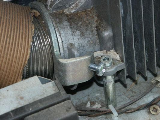 Løsne skruen som holder låseringen til eksosrøret i spenn. Vri låsringen slik at eksosslangen løsner fra pannekroppen.