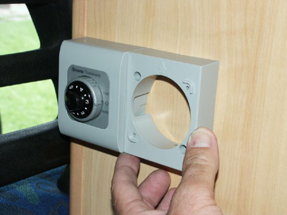 Hit, men ikke lenger! Innkoblingen av Ultraheat må gjøres av en autorisert elektriker. Husk også å få trykkprøvet gass-systemet hos en caravanforhandler eller –reparatør.