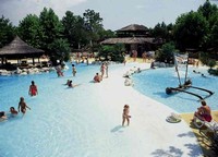 Ca. 100 km syd for Venezia ligger Camping Bungalow Park Tahiti og det er der vi svinger til venstre og kjører vår ekvipasje rett inn på en campingplass, som kan gå under begrepet «totalcamping». Det vil si, at vi strengt tatt ikke behøver å forlate plassen i løpet av den tiden ferien varer, for her finnes alt. Med alt menes for det første toalett-, bad-, vaske- og kjøkkenfasiliteter av svært høy standard. Det blir f.eks gjort rent tre ganger om dagen. Oppstillingsplassene er oppdelt i fem kategorier. Standard på alle plasser er strøm (10 amp) og satellitt TV, men de beste plassene er bla. 100 m2 store med gress og har frittstående små fasilitetshus med bad og toalett. For det andre er det en campingplass med et aktivitetsanlegg for alle aldre og behov. Sportsanlegg med tennisbaner, fitness, ballbaner og svømmebasseng. Hvis sandstranden ikke er god nok, er det et kjempemessig vannland med både rutsjebaner og idylliske velværeområder, der du bla. kan få massasje, innenfor en radius på få minutters gange, uansett hvor du bor på plassen. For ungdommen er det innredet et spesielt ungdomsområde med diskotek og internett. For de helt små er det et miniland med bla. lekeplass. For både store og små er det for øvrig et fullstappet aktivitetsprogram med både mountain-bike og turer i området. Så når italienerne har funnet opp begrepet totalcamping, mener de en campingplass med alle former for serviceanlegg og aktiviteter. Det skal ikke mangle noe.