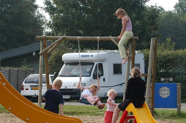 Det må jeg gi han rett i. Solen skinner fra en skyfri himmel. Det er ganske få meter over til den ene av plassens to lekeanlegg, der Mathias kan boltre seg. Han er allerede på vei ut av bilen og har retning mot huskene. Kevin og jeg kommer raskt i snakk, for han forteller meg både om aktiviteter på plassen og en hel masse om opplevelser langs Flensborg fjord. Det er om å gjøre å spisse ørene for alt kommer med mye entusiasme og i et rasende tempo. Før jeg vet ordet av det er Kevin borte, for han har for kort tid siden funnet et vepsebol, som skal fjernes. Og borte er han.