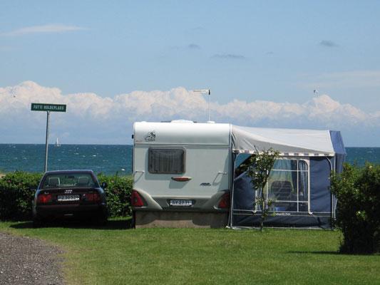 En soloppgang er utrolig vakker, når man sitter foran campingvognen og nyter morgenkaffen og samtidig har utsikt til vann, vann og atter vann. På gode dager kan man se til Læsø, som også enkelt kan besøkes med fergen fra Frederikshavn litt nord for plassen. Mot syd ligger Sæby og som en nyhet i år, er det gangsti langs vannet helt inn til byen. På stranden kan det også leies vannsykler, men ellers legger den opp til avslapping og bading i barnevennlig vann.Det er romslige arealer og masser av plass. Dersom vi ikke alle er på stranden, kan vi fra campingvognen i første rekke, holde øye med Mathias, som leker i vannkanten, mens vi selv sitter og hygger oss foran vognen. Vi kan også selv gå på stranden, mens han og Mie sover middag. Plassene er store, så man ikke ligger på et frimerke, noe man ofte gjør, fordi campingplassen vil stappe inn så mange som mulig, men ikke her.