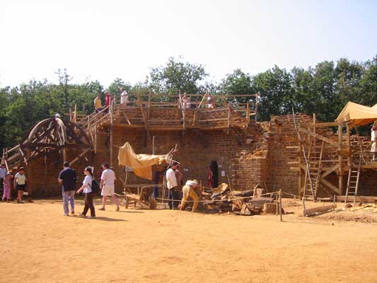 De 45 franske ansatte som går rundt i påkledning fra middelalderen, håndterer og bearbeider daglig store steinblokker, tykke eikebjelker og glødende metall til dette fantastiske byggverk som gjør det til en av Frankrikes mest besøkte turistattraksjoner, en levende middelalder byggeplass som årlig besøkes av mer enn 200.000 mennesker og som dermed er med på å virkeliggjøre denne fantastiske prestasjon i vår moderne tidsalder.Byggingen ble påbegynt i 1997 og nå i år 2004 er borgen vokst til ca 5 meters høyde, det går langsomt, men man regner med at hele byggverket står klart til innvielse i året 2023.I umiddelbar nærhet finner man campingplassen "Camping des Jourmiers" ved en liten sjø, et sted som kan anbefales for flere dagers opphold.