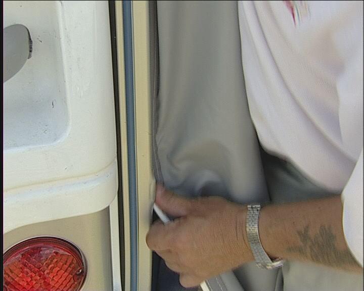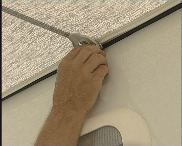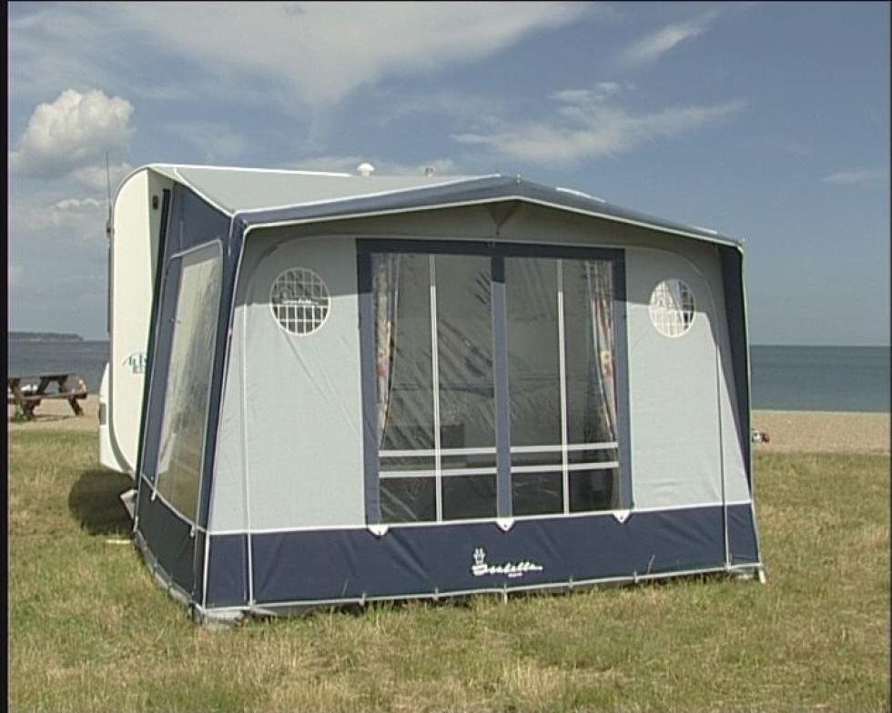 Teknikken ved å sette teltet på campingvognen er at nederste hånd skyver teltduken, mens den andre trekker. Når hele teltduken er inne i skinnen, kan den trekkes fram til det sted, der den skal sitte på vognen.