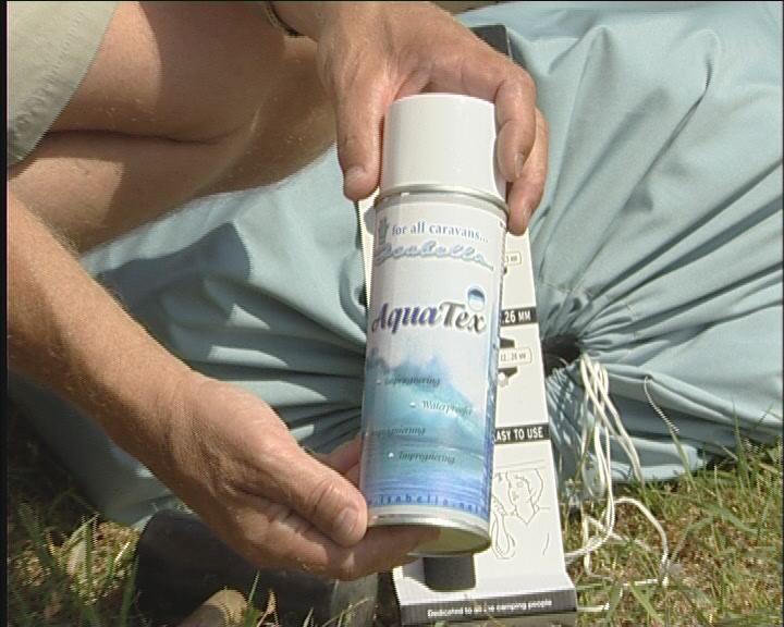For å sikre at teltduken glir i teltskinnen, kan du sprøyte den med Aqua Tex.