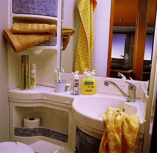 Som på kjøkkenet er det også her tre hovedingredienser, vask, do og dusj. Vasken har ingen betenkeligheter med å bruke. Doen derimot er det mange som kvier seg for å ta i bruk. Men det er bare en vanesak (både å bruke og å tømme den). Dusjen kan være et større problem, noen dusjer er innrettet kun som en nøddusj. I de senere årene har utførelsen stadig blitt bedre og separate dusjer mer vanlig. Bliver det en vane å benytte bilens dusj kan du virkelig reise uavhengig.