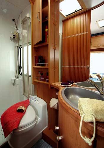 Ønsker du å kunne dusje i bilen, er separat dusj en stor fordel. Etter å ha tørket seg i dusjen går du over i tørre omgivelser i toalettrommet og kler på deg. Akkurat som hjemme. Det har selvfølgelig noe med vane å gjøre, men venner du deg til det gir det virkelig en følelse av luksus. En slik dusj har et problem. Vannet kan lett komme på avveie. Jeg har snakket med folk i Tyskland hvor vannet har kommet under dusjkummen og inn i treverket i gulvet. Derfra har vannet trukket seg oppover i veggene, og alt hadde råtnet opp til en høyde av en meter. Dette er skrekkhistorier som får folk til å la dusjen stå ubrukt. Hvor godt dusjen er utført varierer mye og undertegnede studerer nøye plastpanelene for mulige lekkasjer i bobilomtalene. Der det er skikkelig fuget er man tryggest. Det er ikke dumt, av og til å skru ut noen skruer, å titte bak panelene der det ikke er fuget, for å se om det er tørt. I dag er bortimot alle bobiler og caravans utstyrt med toalettet Porta Potti Cassette C200 fra Thetford, den med vribar toalettskål. Den forrige modellen Cassette C2 eller C4 har ikke vært å se på flere år. Denne er nå erstattet med en ny (ikke vridbar) modell Cassette C 402 eller 403, men så langt har heller ikke denne dukket opp i markedet. Også andre toaletter finnes på markedet, men felles for disse er fast avfallstank, noe som medfører større krav til tømmemulighetene.