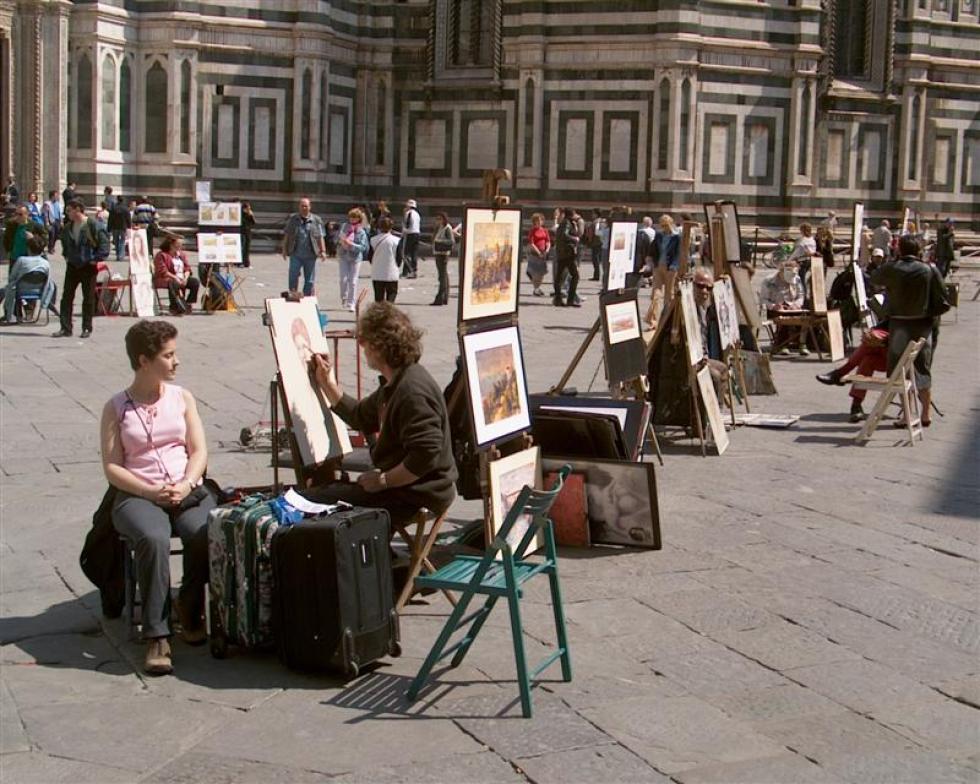Man kan alltid diskutere om det er en god ide å ta med bilen inn i en italiensk storby. Sannsynligheten for å påføre seg en skade er forholdsvis stor pga. tett trafikk og dårlige parkeringsforhold. Til vår store overraskelse fant vi i løpet av kort tid en parkeringsplass inne i sentrum. Det måtte være pga. årstiden. Selv om det alltid er turister i Firenze er april ikke høysesong. Fra bilen kunne vi komme rundt til byens hovedattraksjoner til fots. Enkelt og uproblematisk.