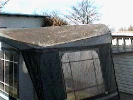 Teltet er et Ambassador 2504 som har stått oppstilt på Frigaards Camping 3 somre og tre vintre før det kom under Tommy og Alphas kjærlige behandling. Først ble teltet grundig spylt med en haveslange og en middels hard børste montert på et langt skaft.Deretter hadde han Alpha teltrens på, samtidig med at børsten masserte løs skitten, og skummet jobbet. Neste skritt er å spyle teltet grundig med slangen, slik al teltrensen blir fjernet.