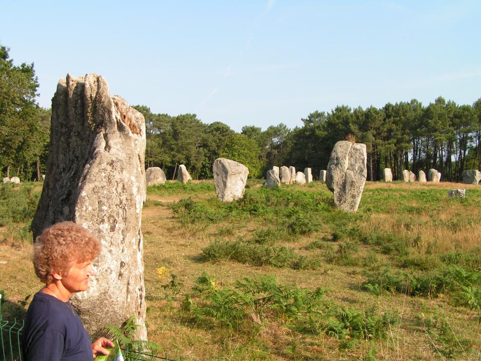 Vi har overnattet på en ganske liten campingplass Camping des Ombrages i Kerlann, som ligger et par kilometer fra Carnacs berømte bautastein. Campingplassen har en del villavogner med små hager hovedsakelig for langliggere, men her er omtrent 12-14 ledige oppstillingsplasser hver på ca. 6x6 meter med høy hekk rundt. De sanitære forholdene kan ikke bli bedre.Det er bautasteinene vi har kommet for å se nærmere på. Mer enn 4000 steiner er reist for mer enn 7000 år siden. Man anslår at de eldste bautasteiner er reist ca. år 5000 før Kristus. Hele komplekset strekker seg over 4 km og er inndelt i forskjellige navngitte grupper: Le Ménes, Toul-Chignan, Kermario, Le Mani, Kerslescan samt Le Petit-Ménec.Hva disse steinsettingene har vært brukt til er fortsatt en gåte. Gravplass – tilbeding av guder – kalender – solur (i flere områder står steinene i rekker øst-vest) – offersted, man vet det ikke! Man mener imidlertid at hele området har vært sammenhengende og at de manglende steinene mellom områdene gjennom århundredene er blitt fjernet og brukt til andre formål.