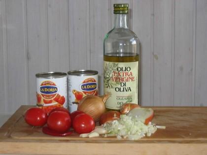 Hvis man vil lage en fyldig tomatsaus i stedet for suppe, dropper man vannet og i stedet kan man tilsette diverse grønnsaker.Som eksempel kan nevnes:Pepperfrukt 1-2 stk, snittes i stykker på 1,5 x 1,5 cm.Sjampinjong 100-250 gram, hver sjampinjong deles i 4.Gulrøtter 4-6 stk. skrelles og snittes i små stykker 1 x 1 cm.Purre, 2 stk. deles på midten og snittes i stykker på 0,5 cm.Courgetter, 1-2 stk. alt etter størrelse, snittes i stykker på 1 x 1 cm.Man kan velge noen eller flere av de nevnte grønnsakene, alt etter smak og behag.Sausen smaker fortreffelig til fylt pasta, tortellini, ravioli og lignende, som kan kjøpes ferdig i de fleste supermarkeder i Europa. Vanlig spagetti, skruer eller lignende kan også brukes.Er man ikke tilhenger av rene grønnsakretter, tilsettes 250-500 gram brunet hakket oksekjøtt, sammen med tomatene.