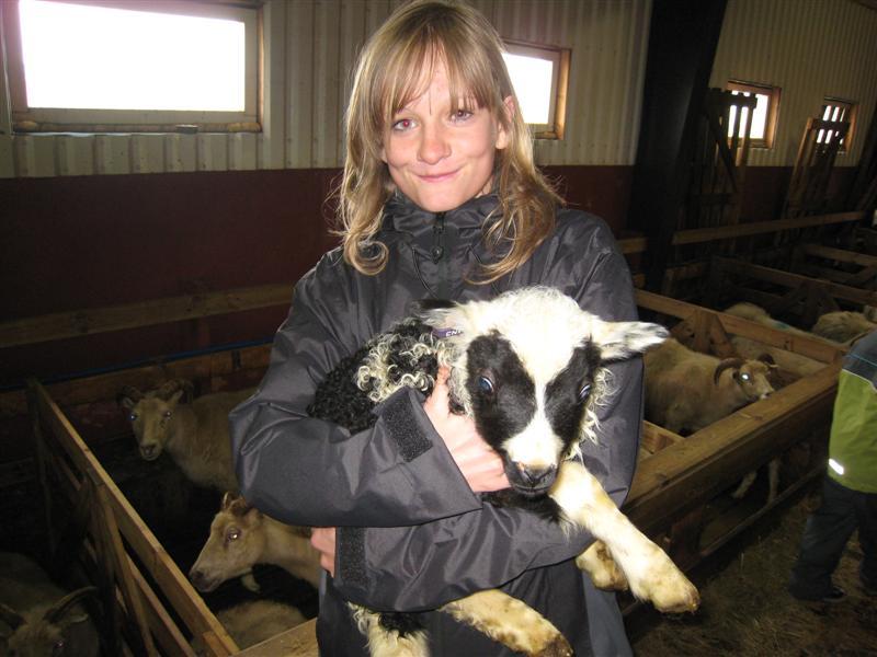 Britta og jeg holder her to små killinger, som Mie kan studere nærmere. De er utrolig kjelne. Stallen er en studie for seg. Sauegjeteren har det travelt med å få det hele til å gå opp. Skulle et får bare få et lam, kan det overta et lam fra en annen, som har fått tre stykker. På den måten utnyttes ressursene optimalt og flere lam overlever. Dette puslespillet styres ikke via en computer, men en håndskrevet tavle og av sauegjeteren selv, som har fullstendig styring på familiesammensetningene. Imponerende.
