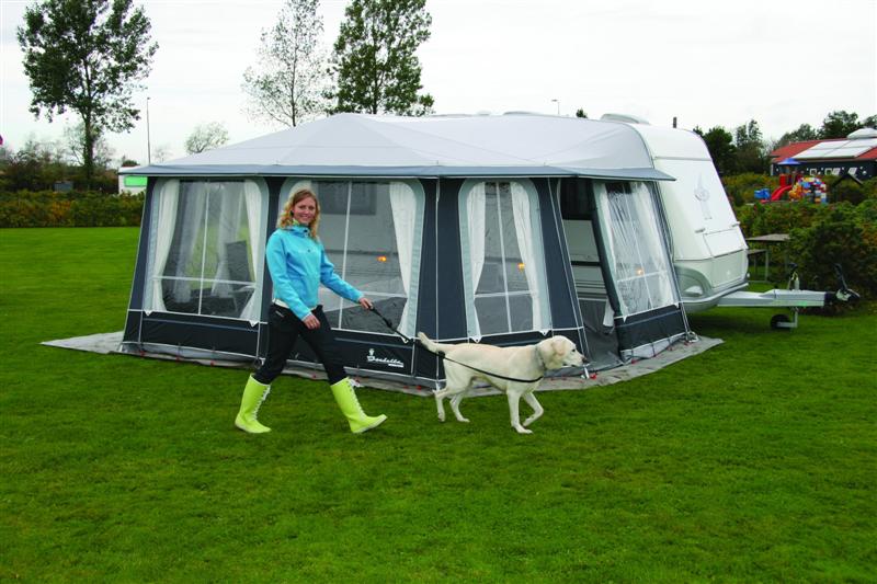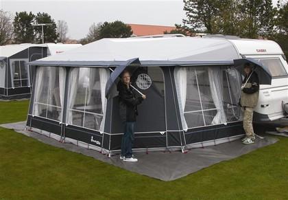 Et godt tips til oppstillingen er også, at man ved å spraye med impregneringsvæske i teltskinnen før montering lettere kan trekke Penta på campingvognen. Dessuten er det en god ide å gå til anskaffelse av en Herkules teltoppspenner. Til tross for sin størrelse står Penta veldig stabilt, selv når værgudene viser seg fra sin værste side. Det skyldes konstruksjonen uten høye hjørner og med det femkantede designet, som betyr at vinden ikke får noe særlig tak. Men vil man gå med både belte og seler, så er et stormoppspenningssett med ekstra barduner og kraftige plugger en mulighet.