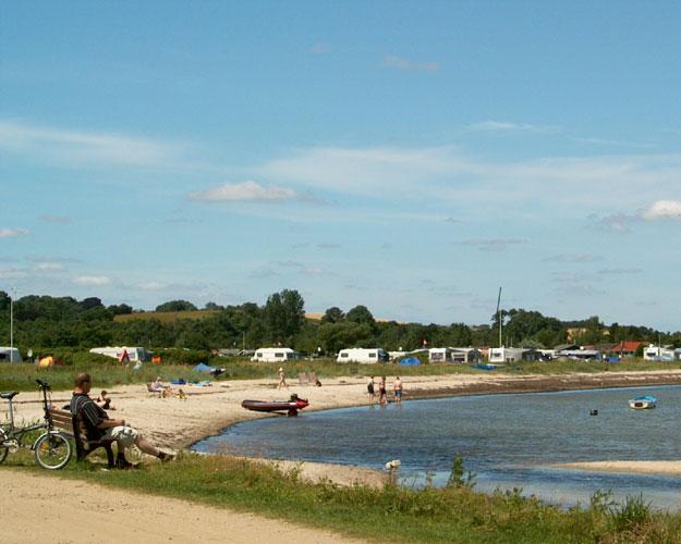 Det er ikke mange steder i Danmark, at man har lov til å campe så nær vannet, og det er en helt spesiell følelse. Om dagen nyter vi utsikten og om natten, når vi ligger med vinduene åpne, kan vi høre bølgeskvulpet i strandkanten. Det er ren helsebot. I løpet av formiddagen blir det sakte men sikkert mer liv på plassen. Selv barna sover lenge, før de skal på lekeplassen og finne nye lekekamerater. Plassens lekeplasser er delt opp, slik at hver aldersgruppe har hver sin del. ”Det har vi gode erfaringer med. De store leker litt villere enn de små, slik at det er fort gjort at det skjer et uhell. På denne måten behøver de store heller ikke å begrense seg og ta for mye hensyn til de små. Det er bare å trå til”, forteller Dan Bugslag, som er leirsjef på plassen.