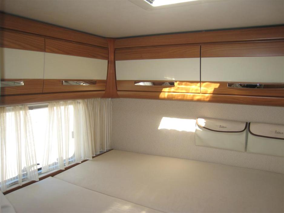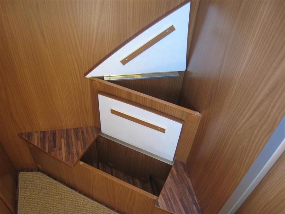 Bobilen har stor garasje, der det er rikelig plass til den lasteevnen bilen har. Man kan komme til garasjen fra begge sider. Det er oppbevaringsrom med nett. Altså allerede konstruert slik at man kan ha orden i sakene sine og med nett, slik at man kan se hva det er i de forskjellige rommene. Flere steder er det kroker så man kan spenne fast grill, sykler og andre større ting. Bobilen har doble gulv, noe som gir flere ekstra oppbevaringsmuligheter på begge sider. Med andre ord er det rikelig med plass.