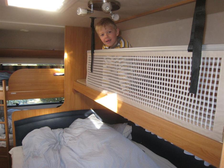 Barna har sitt eget rom, og det er bakerst i campingvognen. Det har flere fordeler. Når barna har lagt seg i sengene ligger de lengst bort fra stuen. Når de leker, kan de gjøre det uten å forstyrre de voksne, som sitter og prater i stuen. Ved siden av køyene er det hyller og et lite nattbord.Spesielt positivt er passasjen mellom køyene og dobbeltsengen. Her kan en voksen alltids komme inn til barna, når de skal legges. Ved sengenes fotende er det et mindre sittearrangement for to barn. Det er oppbevaringsrom under sofaene. Bordet kan også slås ned så man får en liten benk – alternativt en liten seng ekstra.