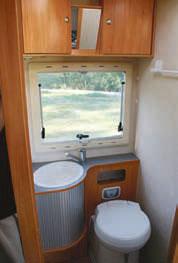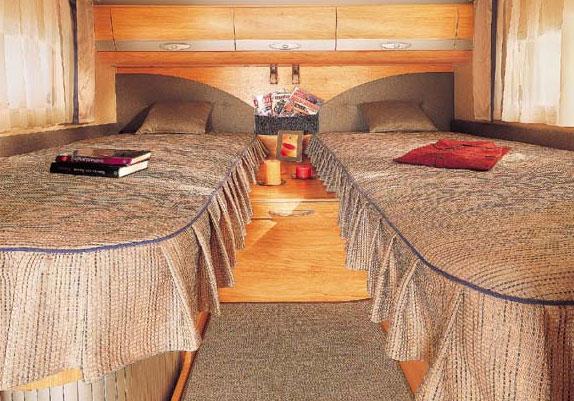 Som normalt i bobiler er det dårlig med avlastnings- og arbeidsflater i kjøkkendelen. Både oppvaskkum og kokeapparat har oppfellbare glasslokk som kan brukes til dette formålet. Litt vel lite er det imidlertid med kjøkkenskap – bare et eneste samt fire skuffer under oppvaskkummen. Forklaringen er delvis ovnen som opptar plass, men nettopp med tanke på at kjøkkenet for øvrig er så velutstyrt lurer man på hvordan all kjøkkenredskap og matvarelager skal få plass. Hadde vi fått velge hadde nok garderobeskapet eller kanskje enda bedre dusjkabinen fått avgi litt plass til fordel for flere og større kjøkkenskap.For øvrig har ”Coralen” i det store og hele verken flere eller færre oppbevaringsskap enn sine konkurrenter. En del av dem har mellomhylle og man kan lure på hvorfor det ikke finnes i alle.Bak kjøkkenet leder en trapp opp til de opphøyde enkeltsengene som har 12 cm tykke, faste og relativt harde fjærmadrasser. Bakveggen har ikke noe vindu, men er kledd med trefinér med skap øverst. Doble sidevinduer og stor takluke gjør likevel soverommet lyst.Selvsagt er det bra med et stort lasterom, men vi er ikke så begeistret for at det stjeler så mye plass mellom senger og tak. Coral 660 SL er imidlertid langt fra ekstreme i dette henseende. Tar man hensyn til at man bare kan laste 150 kilo i ”garasjen” så lurer jeg på hva man skal fylle det flere kubikkmeter store rommet med.