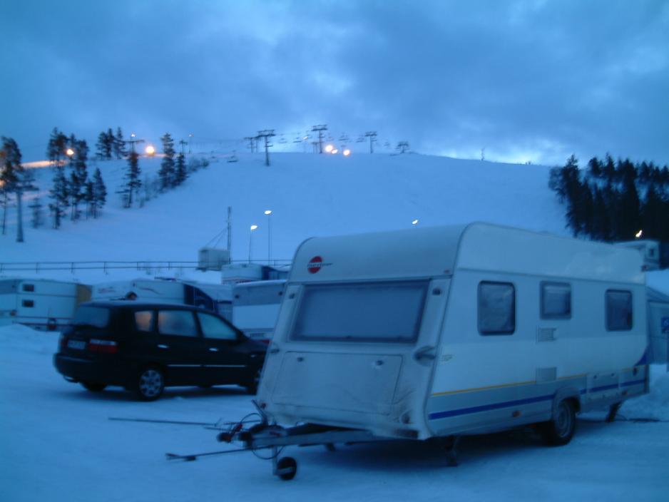 Vi ankommer sent om kvelden og stiller bare opp campingvognen, slik at vi kan krype til køys. Vi har satt på varmen om ettermiddagen, slik at campingvognen er deilig og varm i motsetning til de 10 minusgradene, som det er utenfor. Stivfrosne ledninger henger og svaier i vinden rett over campingplassen og jeg kan nesten ikke vente på at en ny dag skal begynne.