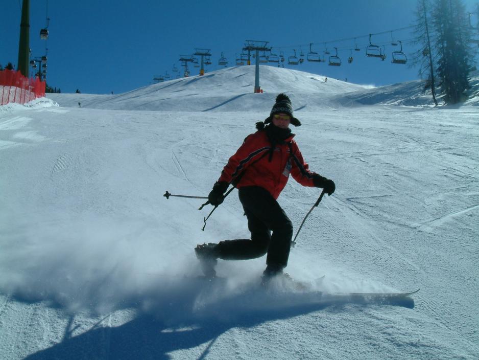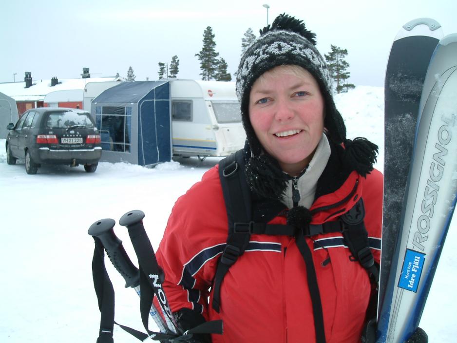 Etter en god frokost med varm kakao er jeg til de grader klar for dagens skigåing. Telemarkskiene spennes på, heiskortet ligger i lommen og så er det bare å legge i vei. Løypene ligger rett ved siden av campingplassen, så man glir rett fra campingvognen og ut på den ene løypa, hvorfra det er adgang til hele skianlegget. Det er helt perfekt og passer godt til mitt skimotto ”Jeg vil ikke bære mine ski – de skal sitte på bena”.