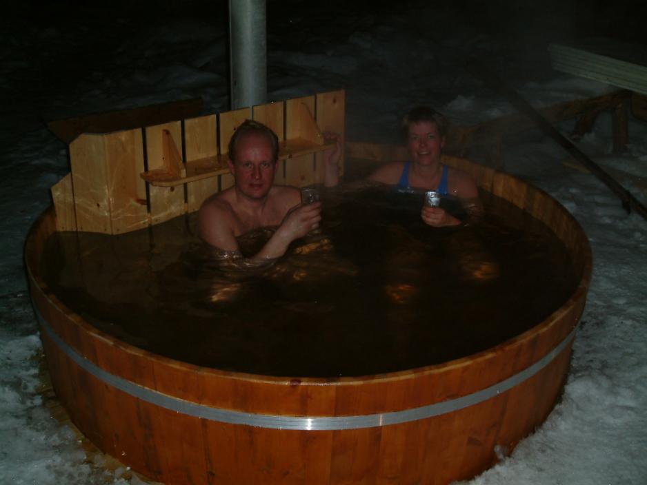 Afterski kan både foregå på den lokale baren eller hjemme i campingvognen, men i Idre også i et 40 graders varmt badekar under åpen himmel. Først en god middag, så en tur i saunaen, deretter en kjølig drink i stampen. Det er minus 10 grader denne kvelden og det snør en smule, men det merkes ikke. Det som merkes er en befriende varme, som trenger inn i ømme beinmuskler. Denne formen for afterski burde være obligatorisk på alle skiferier. De barske ruller sig i snøen og hopper opp i stampen igjen.