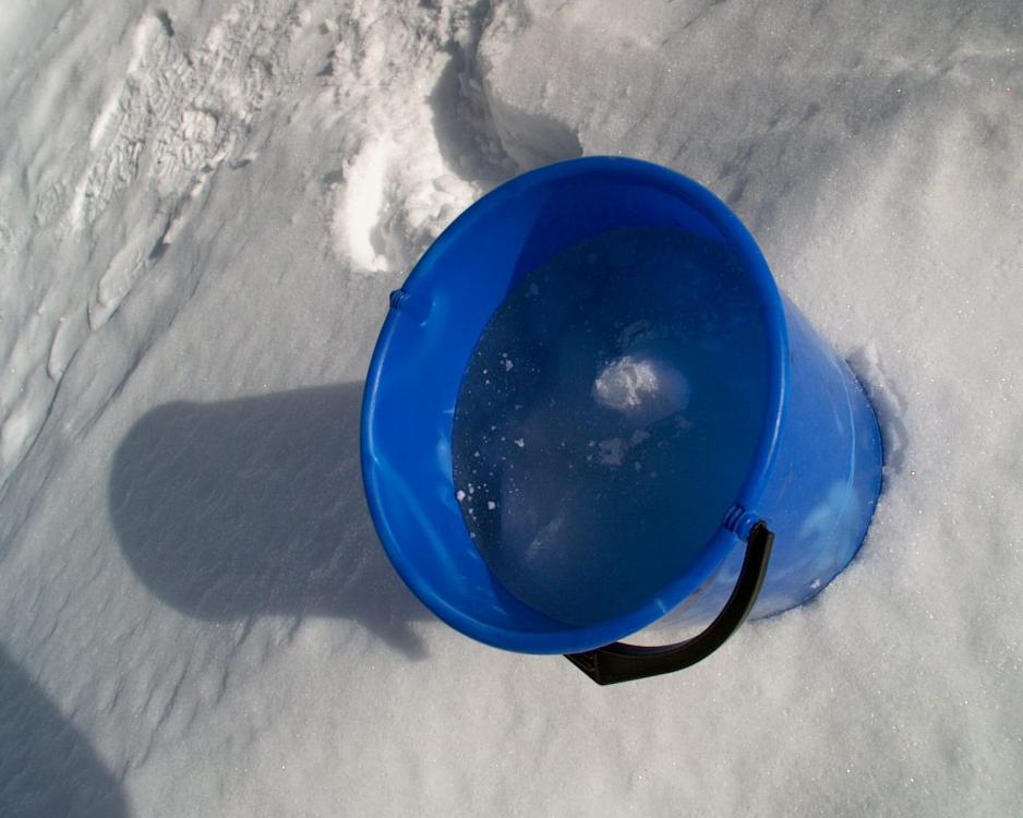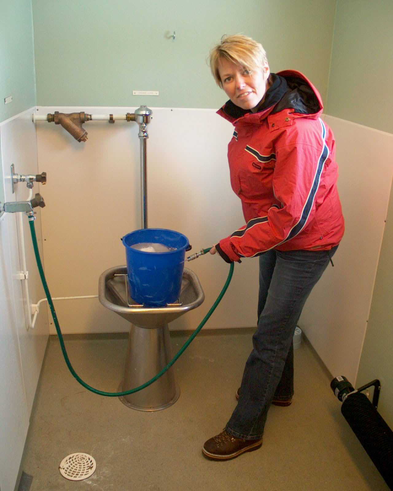 Men hvis du ikke har spillvannstank i vognen kan du alltids klare deg med en helt alminnelig bøtte. Plasser bøtten under avløpet (der du om sommeren monterer spillvannssekken).Grunnen til at det om vinteren kan anbefales å bruke en bøtte i stedet for sekken, er kulden. I spannet kan vannet utvide seg når det fryser, uten at spannet renner over.
