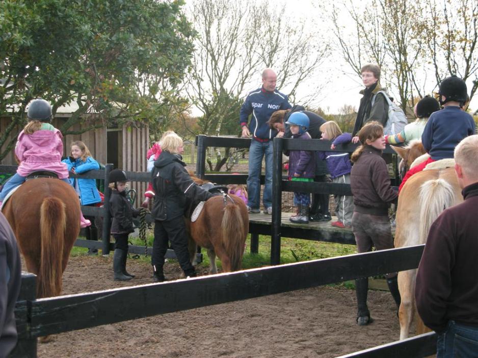 Dagen starter med at Birte – mor i familien Petersen, som eier plassen – forer alle dyrene og her har du mulighet til å være med. Når klokken nærmer seg halv ti, er det så tid for, å gjøre klar hestene til tur for de minste. Turene starter hver dag klokken 10 og første tur er gratis og består av to runder på den lille ridebanen. Etterfølgende tur er mot betaling – prisen framkommer av programmet og er skikkelig billig i forhold til hva man betaler andre steder.Før hestene er klare til dagens tur skal de hentes inn fra jordet. Birte har alltid mange hesteglade jenter som gjerne vil hjelpe til med å gjøre hestene klare og det er også noen av jentene som bor på campingplassen, som er heldige og får en sjanse til å gjøre hestene klare til dagens turer. Når hestene er fanget inn skal de strigles og få renset hovene. Birte er hele tiden med og gir gode råd og veiledning, samt sikrer seg at hennes hester får en god og kjærlig håndtering. Når dette er gjort er de så klare til å få på sal og hovedtøyler. Nå er hestene klare og det står allerede mange små forventningsfulle barn og venter på, at det blir deres tur til å bli trukket rundt på ridebanen.