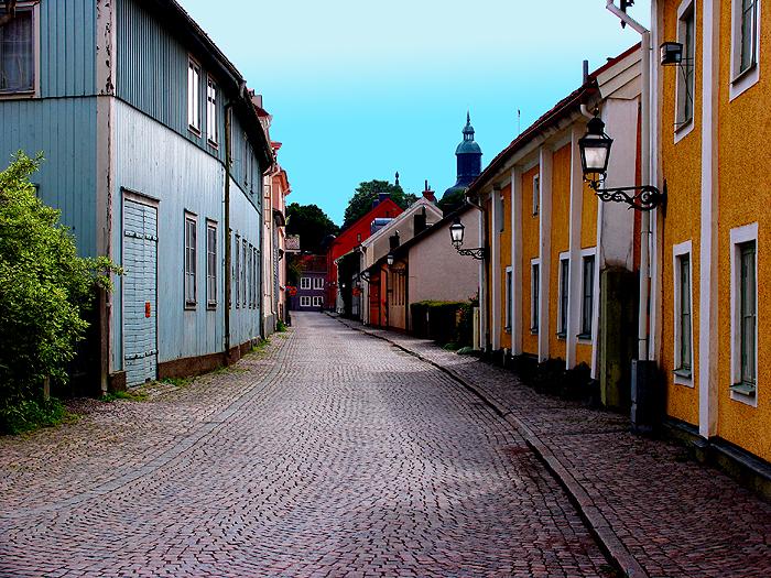 Etter ganske få kilometers kjøring kommer vi til den gamle byen Vadstena og her finnes bygninger helt tilbake til år 1200. Vi finner greit en parkeringsplass, selv om vi har vognen på kroken, og herfra er det rundt en kilometer til Vadstena Slott, som ble grunnlagt av Gustav Vasa så langt tilbake som 1545. Etter en omvisning går vi gjennom den gamle byen og nyter de praktfulle gamle husene i sommervarmen og kommer ned til det klosteret, som byen er bygget opp rundt. Det ble grunnlagt av den hellige Birgitta (1303-73), som var en framsynt kvinne med mye god livsvisdom og klosteret ble raskt et valfartssted og er fortsatt verdt et besøk.I klosterkirken foregår det stadig kirkelige handlinger, mens turister strømmer inn og ut av kirken. Det kan minne om å være i en katolsk kirke i Sydeuropa.