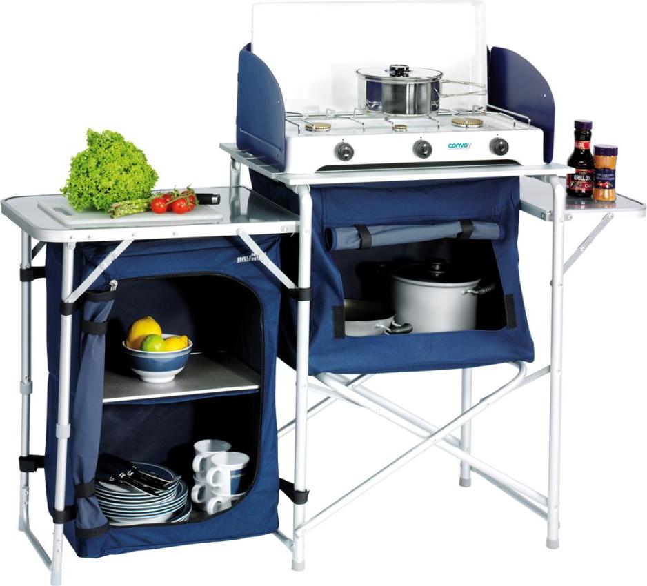 Jum Box er en serie med campingskap av veldig høy kvalitet. Skapene har et robust stativ av aluminium samt trekk i polyester. De er enkle å sette opp og ta ned igjen. De leveres i praktisk veske, slik at de er enkle å ta med.Kjøkkenskapet med arbeidsbord er en nyhet i serien. Kjøkkenskapet har kokeplass med avskjerming mot sprut og søl. Det er tre hyller til oppbevaring og arbeidsbord til f.eks. oppskjæring eller oppvask. Bordet måler 143 x 40 x 80 cm og koster kr. 935. Jum Box kan kjøpes hos din lokale campingforhandler – se dct-vejle.dk/forhandlere.