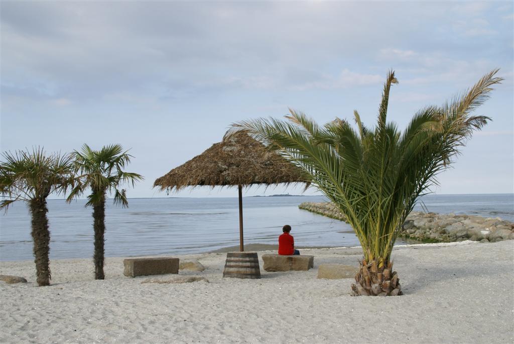 Man skulle umiddelbart tro, at det ville være i de sydlige områdene av Danmark, at man ville finne en palmestrand, men slik er det ikke. Og mange trakk da også på smilebåndet, da det omfattende strandprosjektet ble lansert for fire år siden, men ikke desto mindre er palmestranden en realitet, som trekker mange tusen badeglade gjester hver sommer.Palmestranden er nesten 500 meter lang med ca. 90 palmer, grillhytter og liggestoler. Den ligger 400 meter fra campingplassen, der vi bor.