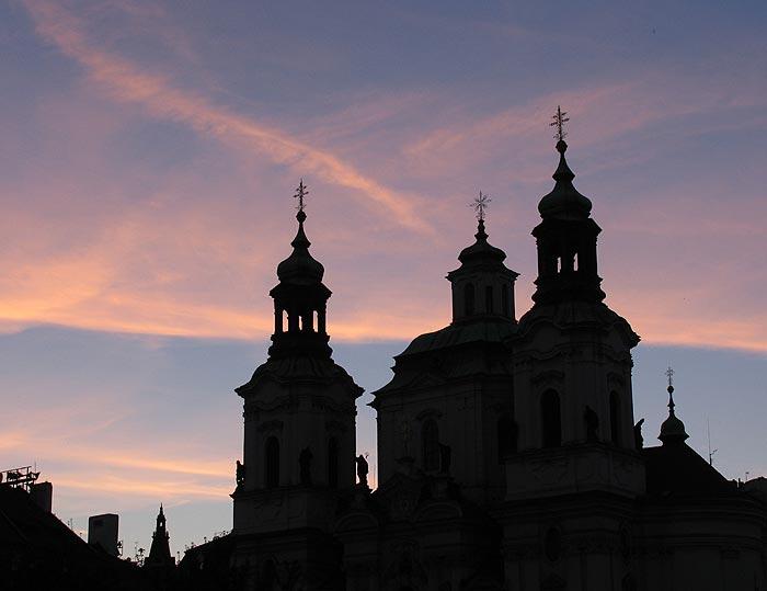 Rådhusplassen er åsted for en del forskjellige severdigheter: Først og fremst rådhuset selv, som er oppført i 1328. På fasaden mot syd er det plassert mer enn 500 år gamle astronomiske ur, der den innviklede mekanikken er for vanskelig for meg å forklare, men det samler hver time, mest midt på dagen, en tusentallig skare av turister, som vil beundre dette urverket. Ikke minst fordi det åpner seg noen dører i toppen, hvoretter det kommer ut en liten prosesjon. På plassens østside finnes Tyn-kirken fra 1511, der den store danske astronomen Tycho Brahe ble gravlagt.Midt på plassen finnes det store monumentet over Jan Hus og andre, som har kjempet for en selvstendig bøhmisk (tsjekkisk) stat gjennom flere århundre. På plassens nordside finnes en liten kirke i barokkstil; den heter Mikulaskirken og anvendes ofte til konserter og er kirke for jesuittene.