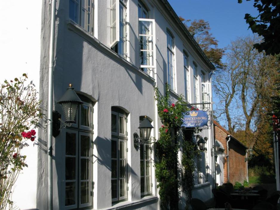 Midt i gaten ligger Schackenborg Slottskro, som i tillegg til selve kroa har hotellrom i de gamle bygningene ovenfor på den andre siden av gaten. Hyggelig innredede værelser i første etasje og i 2. etasje på knirkende gulv. Det er i krostuen at forskjellen fra andre hoteller/restauranter ses, føles og smakes. Her serveres mat, som bare kan betegnes som gourmetmat. For eksempel ble det denne kvelden servert: Et lite røkt laksestykke, kamskjell med havtorn på en seng av blomkålsmusse, stekt laks med hummerskum og spisskål, hanelever med chutney av kvede, stekt and, Bette Christian ost, sjokoladekake med is og honningstekt frukt.Hvite- røde- og dessertviner var selvfølgelig avstemt harmonisk til de ulike rettene.På veggen i krostuen henger et bilde av Kong Christian IV, som ser ned på oss med et skjevt smil mens vi spiser. Den gang han ble servert, besto middagen av minst 20 retter – og til bestikket hørte en liten fasanfjær. Så kunne man etter de 10 første rettene trekke seg tilbake med fjæren, stikke den i halsen og få tømt magen – slik at det ble plass til de neste 10 serveringene! Jeg syns vi skal la Christian være i fred – og bare nyte den særdeles lekre, fargerike og velsmakende gourmetmaten, som her blir presentert på best tenkelige måte. En stor opplevelse.