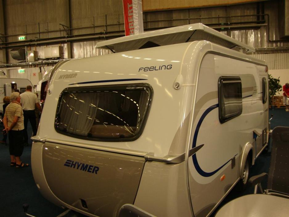Vognen har kjøkken med to gassbluss og vask, samt et toalett bakerst i vognen. Der er et 80 liters kjøleskap og et klesskap plassert overfor hverandre umiddelbart foran døren. Forrest er det to lange sofaer som kan brukes som to soveplasser, med sengemål på hele 198x65 cm og det er en sofa på tvers bakerst, slik at det er snakk om en rundsittegruppe rundt et bord, noe som er unikt, vognens størrelse tatt i betraktning.Hymer Feeling er en sommervogn, som imidlertid godt kan brukes i yttersesongene. Den er utstyrt med heve/senketak, som gir et utmerket klima på sydlige breddegrader.Et både kjent og anerkjent konsept hos Hymer. Denne konstruksjonen gir en forbedret drivstofføkonomi.