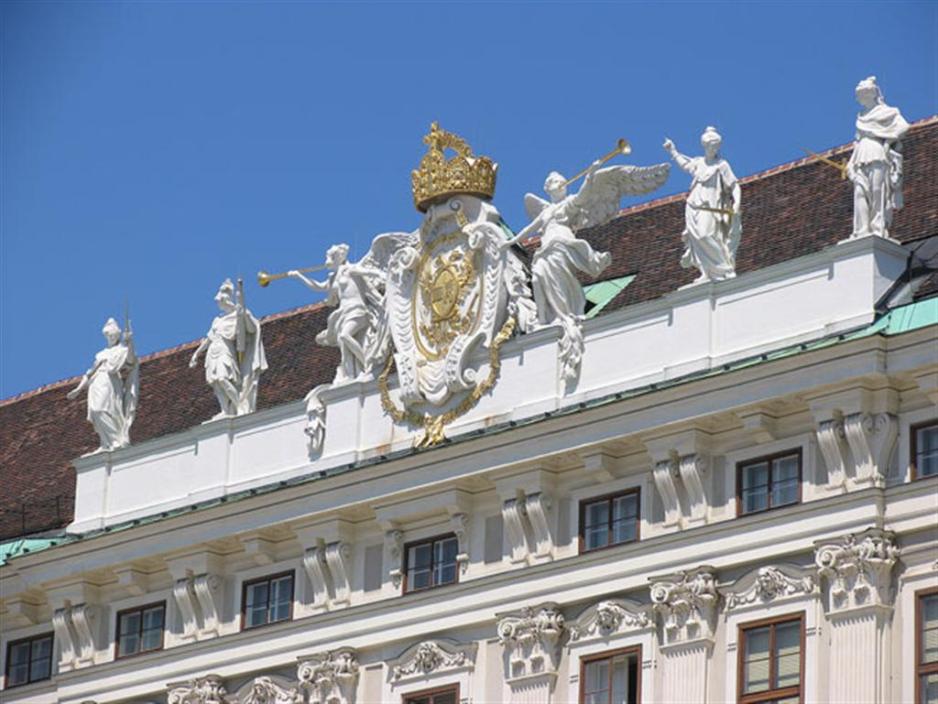 På parkens østlige side troner så slottet over alle slott: Hofburg. Keiserens enorme palass. Foran slottet og ut til Volksgarten ligger den store plassen ”Heldenplatz”. Slottets fasade strekker seg over hele plassens bredde pluss den ene langsiden. Det er hele Wiens mest dominerende kjennetegn. Hele slottets område består av 18 portaler og porter og hele 19 gårdsplasser mellom bygningene. Man kan saktens sette av en hel dag bare på Hofburg, men rekker likevel ikke alt sammen. Det er bare åpent fra kl. 9 – 17, så man skal virkelig trå til for å rekke over alt sammen.Et ”must” er naturligvis skattkammeret, der man kan se de keiserlige kjoler, uniformer og de helt eventyrlige skattene, med kroner og ordener, bestående av tusenvis av diamanter og andre edelstener. Naturligvis innrammet i tonnevis av skinnende gull. De skandinaviske kongehusene sine skattkamre blir som den rene fattigdom ved siden av denne overdådigheten. Den spanske rideskolen må man også absolutt se, der man får et glimrende innblikk i Lippizanerhestens egenskaper og skjønnhet. Til dagens store forestilling skal man bestille billetter 3 måneder på forhånd, ellers kan man nøye seg med en treningstime. Rideskolen har også sitt eget museum ”Lippizanermuseum” og her finnes også slottets egen kirke ”Burgkapelle”, som er en av de eldste delene av slottet. Det var den gang – før 1450, da man fortsatt bare snakket om en borg på stedet. Siden da er kapellet omgjort flere ganger, først i fransk gotisk stil, siden ombygget til barokk. Til gudstjenestene hører man her Wiener Sängerknaben, som nok er verdens mest berømte guttekor.