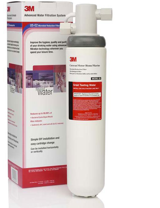 Selv vanntanker og slanger som ikke er rengjort kan gi opphav til dårlig smak og forurense vannet med bakterier. 3Ms vannfilter US-E2 er spesielt utviklet for bruk i campingvogner, bobiler eller båter. Filteret kan enkelt demonteres når enheten skal tappes for vann foran vinteropplaget, og tilkoblingen kan plugges med en medfølgende bypassplugg. Dette gir mulighet for å rengjøre tank og slanger med for eksempel et tankrengjøringsmiddel som skulle kunne skade filterpatronen.Filteret har følgende egenskaper:• Enkelt å installere• Anbefales at installasjonen gjøres i tilknytning til kaldtvannskranen på kjøkkenet.• Kan installeres vertikalt, horisontalt, liggende eller stående.• Utskiftbar filterpatron• Patentert sammenkobling mellom kobling og filter.• Tilkoblingsnipler for 12mm slange eller John Guest 12mm medfølgerFordeler:• Gir rent og klart vann• Reduserer dårlig smak og lukt• Kan monteres under vasken, sittebenker eller i skap• Tar liten plass• Enkelt å bytte filter• Minsker smak og lukt av klorvann• Enkel å bruke• Flere tilkoblingsmuligheter• Gir rent og godt vann, erstatter vann på PET-flaske• Tester viser at reduksjonen av bakterier, parasitter og alger minsker med opp til 99,99%