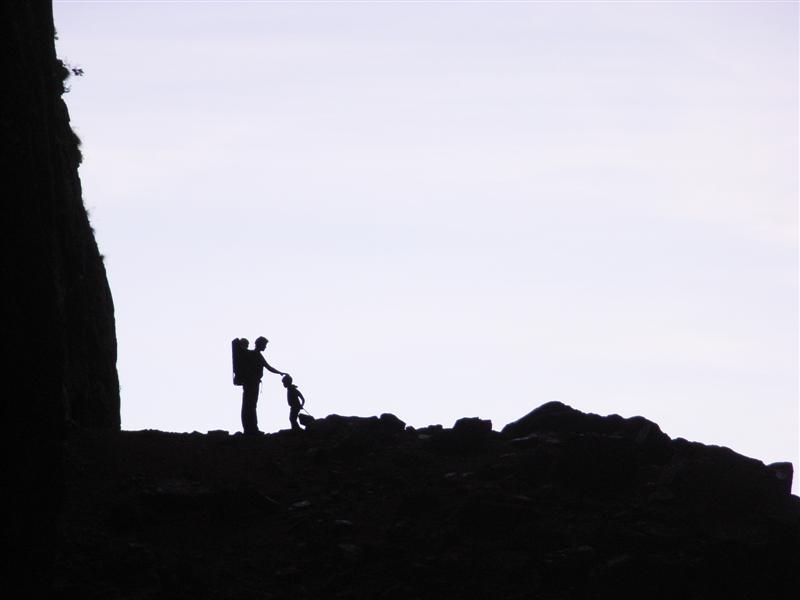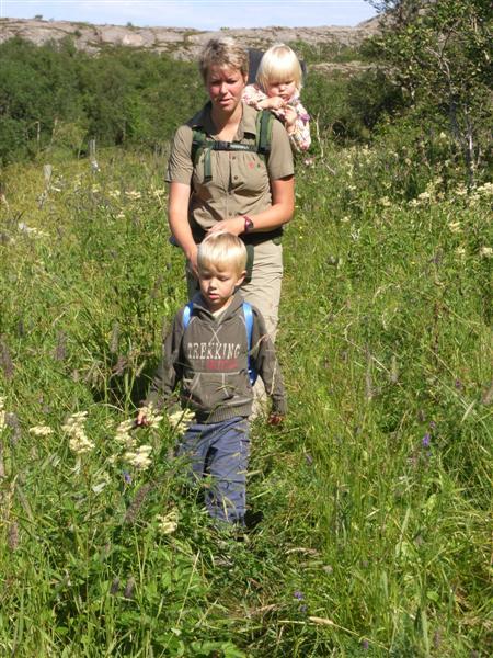 En populær fottur går gjennom fjellet og det kan bestiges av stort sett alle på et par timer. Mie, som er to år sitter i bærestolen og nyter hele turen derfra. Mathias på fire år finner stien foran oss, mens vi får en hyggelig prat om de norske trollene. De siste 100 høydemetrene er de værste fordi man går på store kampestener, men utsikten bak oss er imponerende og det samme gjelder det store hullet i Torghatten. Et udsedvanlig stykke natur.Man kan vælge å gå samme vei tilbake til campingplassen eller gå gjennom hullet og ned på den andre siden, der det imidlertid er litt brattere.