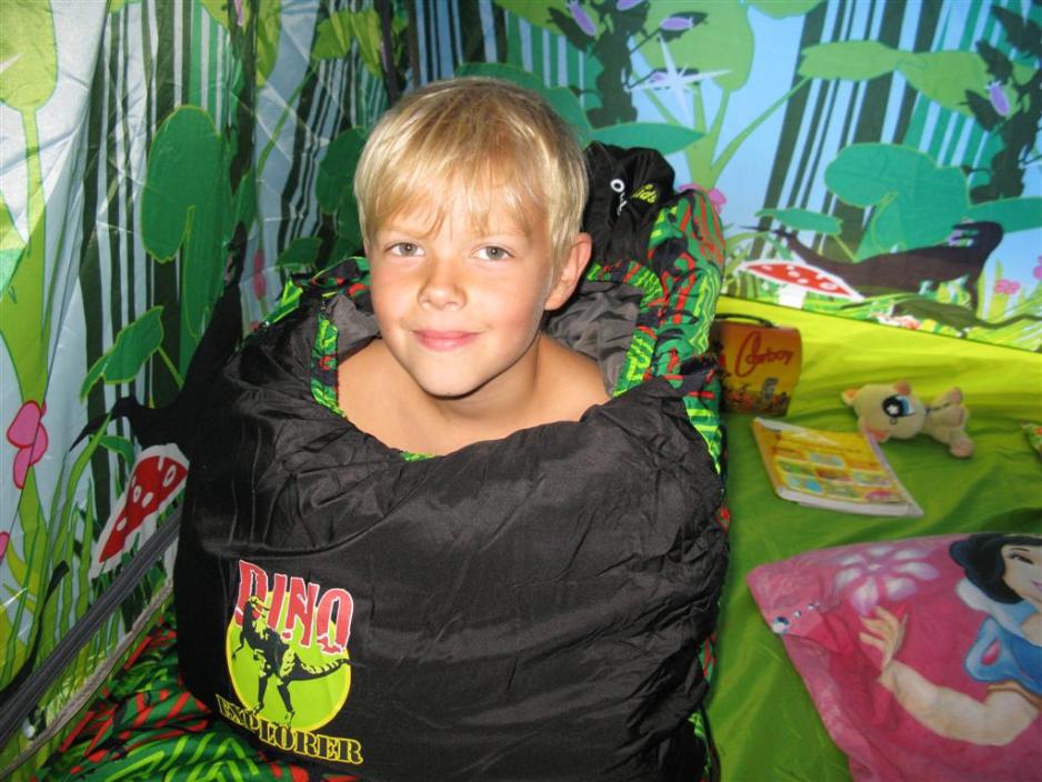 Hvis det skal være helt perfekt kan man også få soveposer, som matcher teltet. Her er det både en jente- og en gutteversjon.