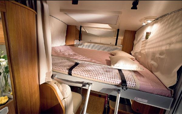 – Dette er en halvintegrert bil med soveplass for seks personer og med plass for fem når man kjører, forklarer Peter Blomqvist hos Adria i Tenhult i Sverige.Det spesielle er at det har en senkeseng som kan tas ned fra 190 centimeters høyde til tre forskjellige høyder. Matrix–serien har allerede blitt viet internasjonal oppmerksomhet. Modellen Adria Matrix 680SP ble utsett til «Motorhome of the Year» i Storbritannia, selv om modellene først kommer i serieproduksjon fra og med juni 2010. Senkeseng–prinsippet er ganske nytt i bobilbransjen, men Adria trykker på at dette er den nye generasjonens bobil, som forener den halvintegrerte bilens smidighet og lave luftmotstand med alkovebilens sjenerøse romslighet, som det så fint heter i brosjyren.- Den forbedrede aerodynamikken skal gi lavere luftmotstand og derigjennom også et lavere drivstofforbruk – noe som ikke er et uvesentlig salgsargument med de drivstoffprisene vi har i dag, sier Peter Blomqvist.