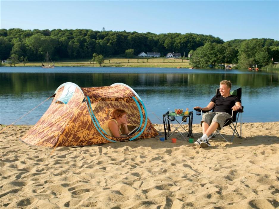 Du behøver ikke kaste bort tiden med å slå opp telt på festivalen - pop-up teltet Hot Summer fra Easy Camp® slår seg opp selv, når teltposen åpnes – det hele tar bare to sekunder, så har du i stedet tid til å nyte musikken!Det er viktig å sove tørt og godt og hvis festivalværet viser seg fra sin våte side er teltet plutselig det eneste som hindrer deg i å bli gjennomvåt. Hot Summer har et vannsøyletrykk på 1500 mm, så det skal nok klare å holde en festivalbyge ute. Er det derimot varmt har du mulighet til å få en frisk bris gjennom teltet, da det har ventilasjon i begge ender. Dessuten kan myggnettet trekkes ned selv om ”døren” er åpen, noe som holder insekter ute. Når teltet er pakket sammen er det lett å ha med rundt og så veier det bare 3,5 kilo.I Easy Camp’s kolleksjon finner du også soveposer og selvoppblåsende liggeunderlag med innebygget hodepute - så du er sikker på å få en behagelig natts søvn.