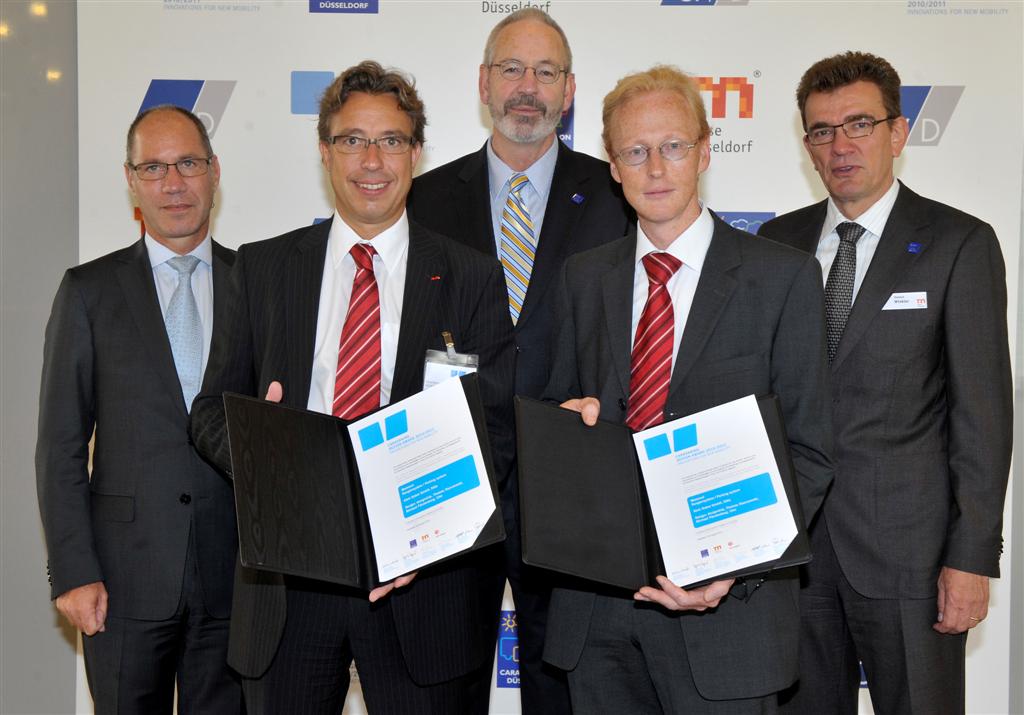 Fra venstre: Elmar Schüller, direktør i "Red Dot", Achim Sach, Markedssjef i Europa AL-KO, Joachim Schäfer, direktør for Düsseldorfmessen, Dr Klaus Wilhelm, sjef for kjøretøyteknikkutvikling hos AL-KO samt Helmut Winkler, direktør for messen "Caravan Salon"