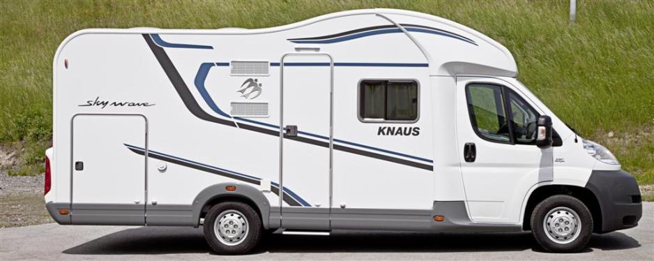 Delintegrert modellserie i tre planløsninger (650 MF, 650 MG, 700 MQ) alle bygd på Fiat Ducato chassis – lav ramme og bredsporet for optimale kjøreegenskaper. Sky Wave fås i seks forskjellige motorvarianter.Spesialformet senkeseng med elektronisk betjening er standard. Frihøyde under hevet seng er 187 cm, unikt for denne typen bobiler.Attraktivt nytt design: Med flat bølgeformet topp, ny Knaus design på endeveggen, ny inngangsdør med integrert søppelkasse og hylle, nye stafferinger, samt mulighet for Silver line (Sølvfarget) som tilvalg.