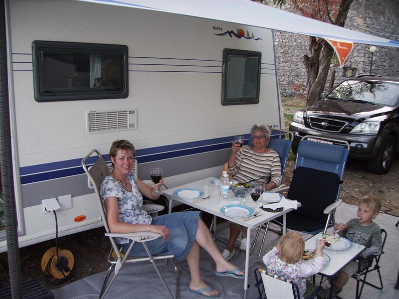 Vi gleder oss over å komme tilbake til campingplassen. Selv om den ligger et stykke fra Napoli, er det verdt kjøreturen, for å komme bort fra storbyens støy. Foran campingvognen vår kan vi nyte kveldsmaten, et glass vin eller to, mens barna sover innenfor.Vi sitter under en stjerneklar himmel blant ildfluer og nyter Middelhavets rolige bølgeskvulp.