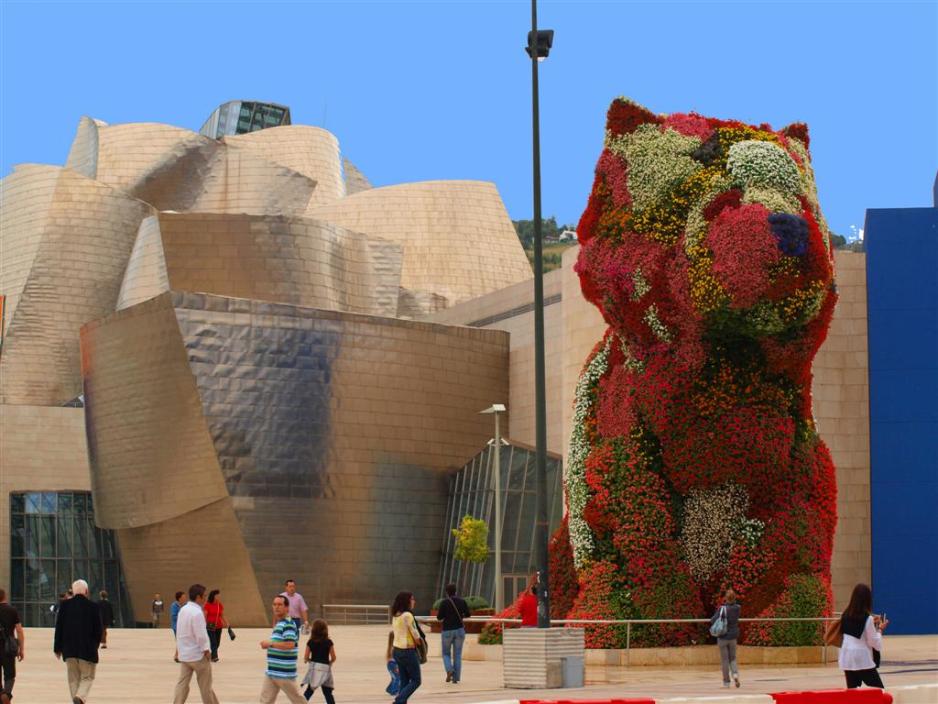 Bilbao var for ganske få år siden en by i forfall. Arbeidsløsheten steg med lynets hastighet etter at skipsverftene og stålindustrien en etter en måtte legge inn årene. Byrådet fikk så den lyse ideen med å erstatte stålindustrien med kultur. Det ble byens redning, man fikk nemlig overtalt The Guggenheim Foundation i USA til å oppføre en europeisk filial av det berømte museet i New York. Eksperimentet ble en dundrende suksess og 13 år etter innvielsen har millioner av mennesker fra hele verden valfartet til Baskerland for å oppleve både moderne kunst og en helt unik museumsbygning, som utvendig har et skall av gyllent skinnende titan.Fra Sopelana går det metro inn til Bilbaos sentrum og selv om byen ”bare” har 950.000 innbyggere, så er den stor nok til, at man absolutt skal benytte seg av den muligheten. Det er her som ved andre større byer, en umulighet å finne en parkeringsplass midt i byen. Billetten til metroen er veldig billig, det er til gjengjeld ikke parkeringshusene.
