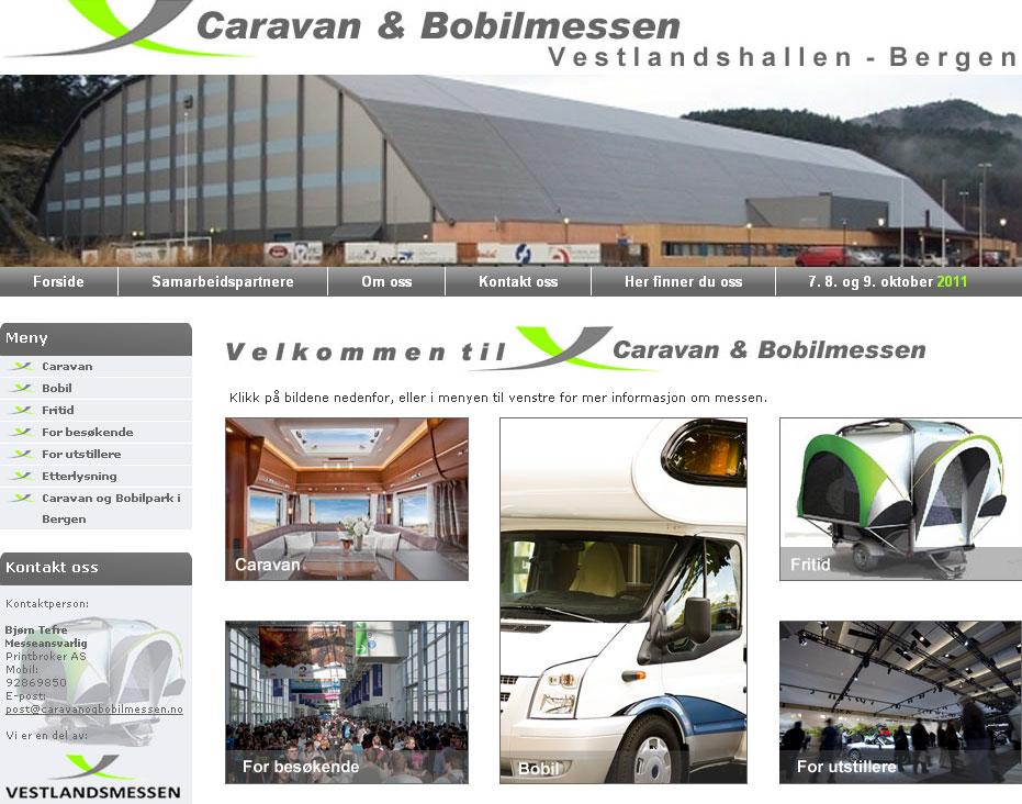 Under betegnelsen Caravan & Bobilmessen vil det i Vestlandshallen i Bergen bli arrangert en stor bobilmesse i perioden 7-9 oktober 2011. Arrangør av messen er firmaet Printbroker AS, som siden 1993 har stått bak Fritidsmessen i Bergen.Som utstillere på messen har man alle de lokale bransjeaktørene: Arve Opsahl, Bergen Caravan, Bjoravik Bil, Bobil Vest, Elite Caravan, Fana Caravan og Vest Caravan. Dette igjen tilsier at de fleste av merkene som i dag er representert i Norge vil bli å se på messen, i tillegg til utstyr og rekvisita.I tilknytning til messen har man satt seg som mål å finne fram til den eldste campingvognen og bobilen på Vestlandet, og publikum er anmodet om å sende inn informasjon om aktuelle kandidater.Åpningstidene er fredag 7. oktober fra 16.00 – 21.00, lørdag og søndag fra 11.00 – 18.00.For tilreisende med egen bobil er det mulig å overnatte på Bergen Bobilsenter.